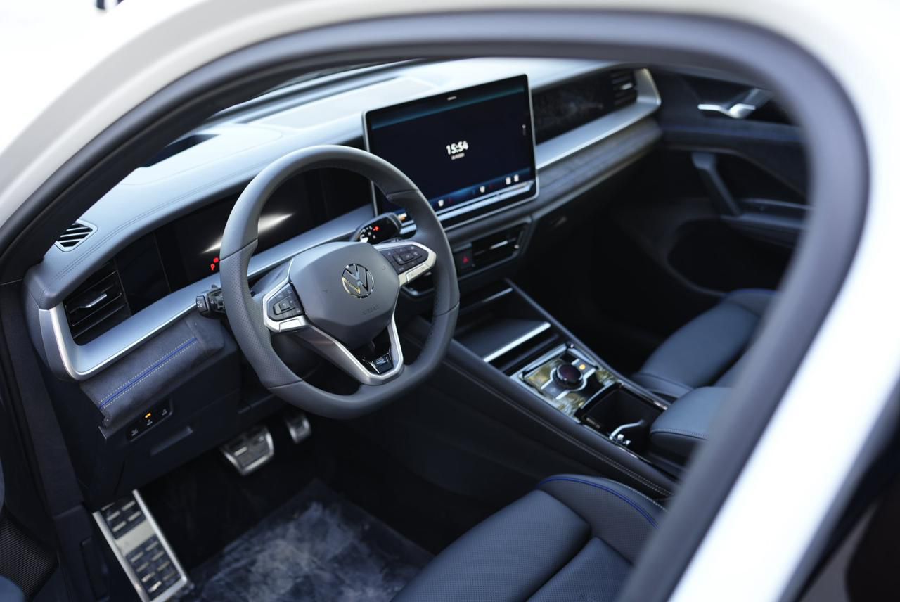 لم يقتصر اهتمام فولكس فاجن على المظهر الخارجي لمنح تايرون طابعًا فاخرًا، بل امتد إلى المقصورة الداخلية التي تجمع بين المكوّنات عالية الجودة والأسطح ناعمة الملمس، مما يَشي عن مستوى فريد مِن جودة التصنيع. وتُهيْمن شاشة النظام المعلوماتي العاملة باللمس قياس ١٥ بوصة على لوحة القيادة، وهناك كذلك لوحة عدَّادات رقمية بالكامل قياس ١٠.٢٥ بوصة تُعَزِّز مِن الطابع العصري الأنيق، كما لا يُمكن إغفال نظام Wireless App-Connect المزوّد بنظامي Android Auto وApple CarPlay لإنشاء اتصال بين الهاتف الذكي والنظام المعلوماتي الترفيهي في السيارة، بالإضافة إلي نظام IDA المسئول عن الأوامر الصوتيه متصلا مع الذكاء الإصطناعي .ChatGPT
