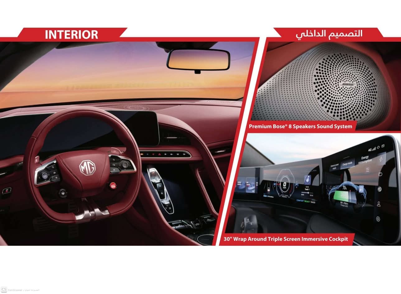 أما من حيث التصميم، فتخطف “سايبرستر” الأنظار بأبوابها التي تفتح إلى الأعلى بأسلوب “المقص” وسقفها القماشي القابل للطي كهربائياً، مما يمزج بين التراث الكلاسيكي لسيارات MG الرياضية القديمة وبين التكنولوجيا العصرية. كما زودت المقصورة الداخلية بأحدث التقنيات، بما في ذلك ثلاث شاشات محيطة بالسائق ونظام صوتي فاخر، لضمان تجربة قيادة غامرة ومريحة.